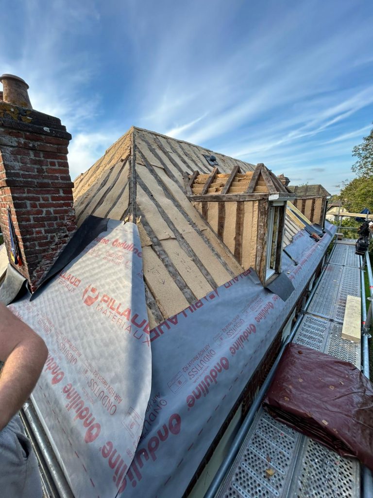 Ardoises, tuiles, bac acier, bardeau de châtaigner, pose de Velux.